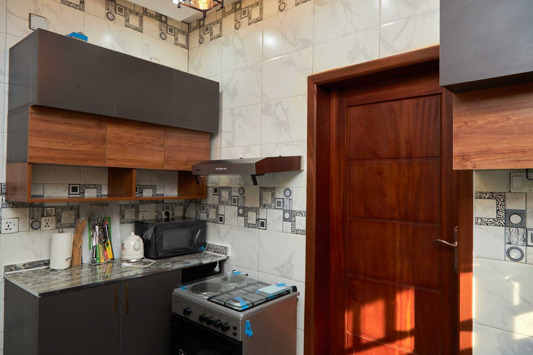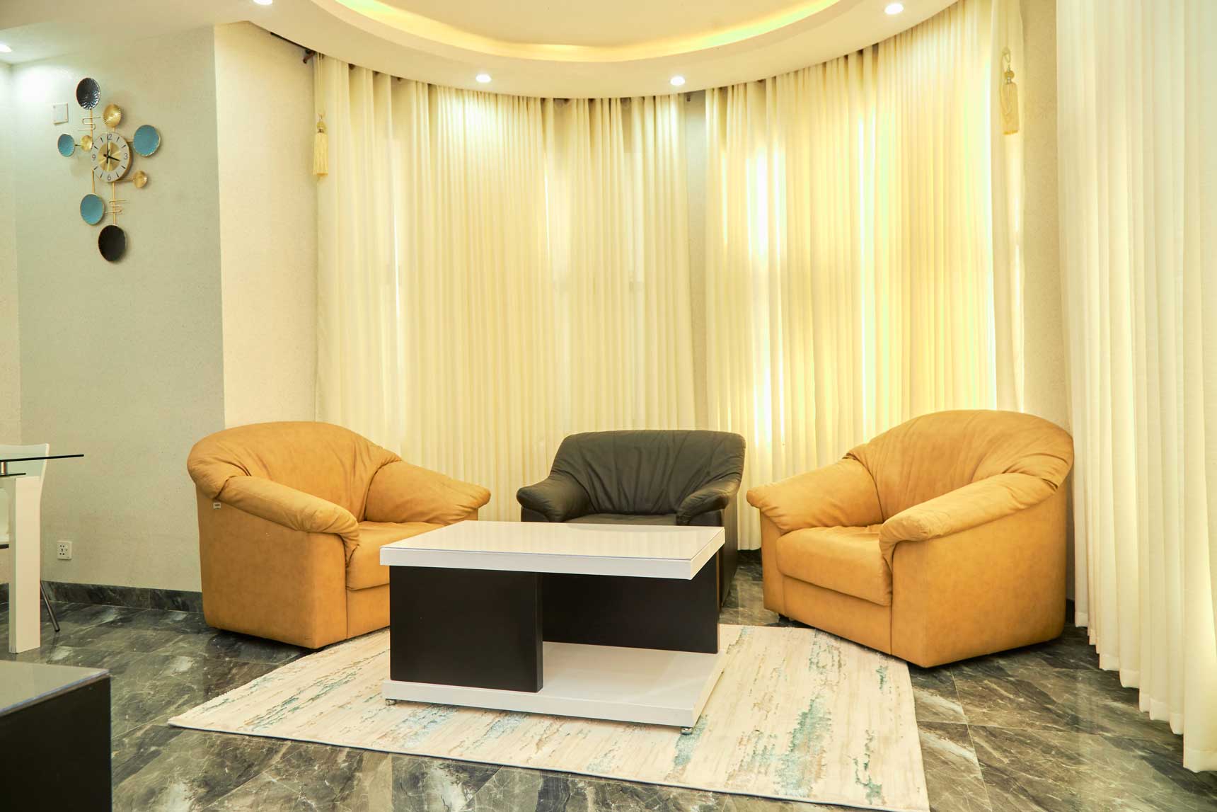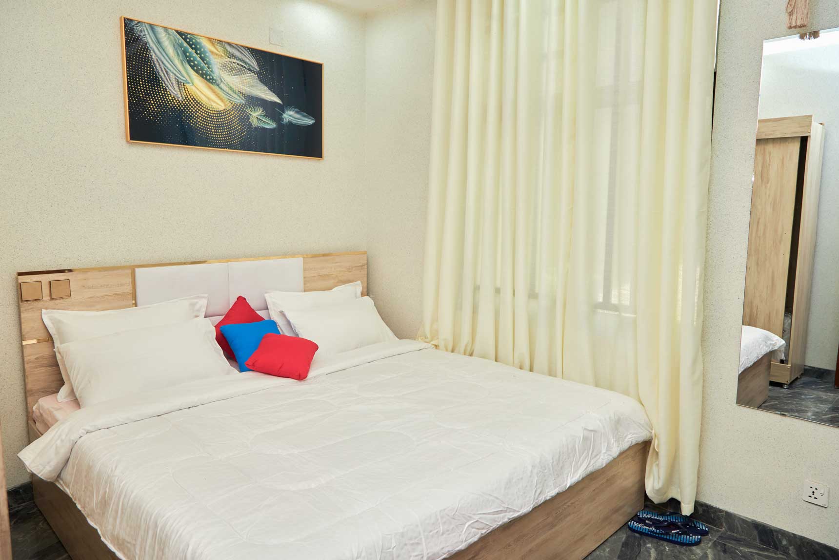 • Un appartement de luxe situé au premier niveau ayant deux chambres avec toilette et salle de bain moderne chacune, un salon, une cuisine, un balcon et une toilette moderne pour visiteur, une connexion internet à haut début.